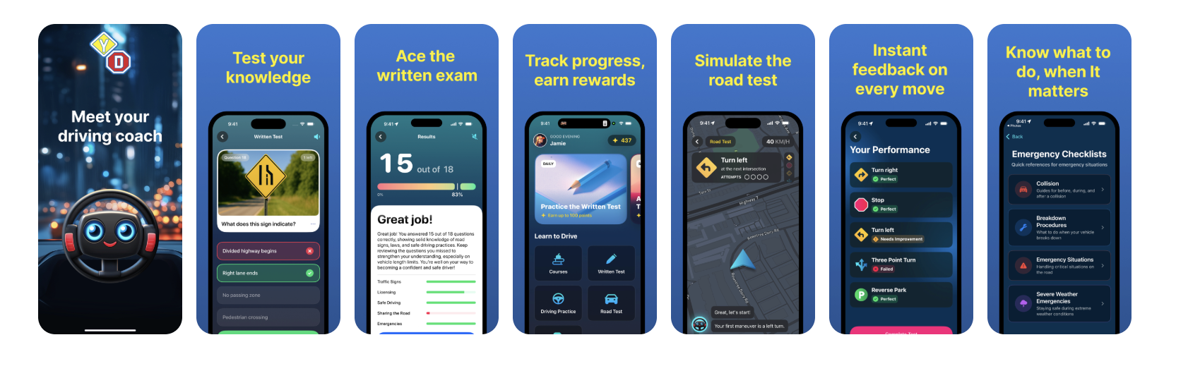 The YD Drivers Coach app combines 50+ years of driving education expertise with cutting-edge AI technology to deliver a personalized learning experience.
